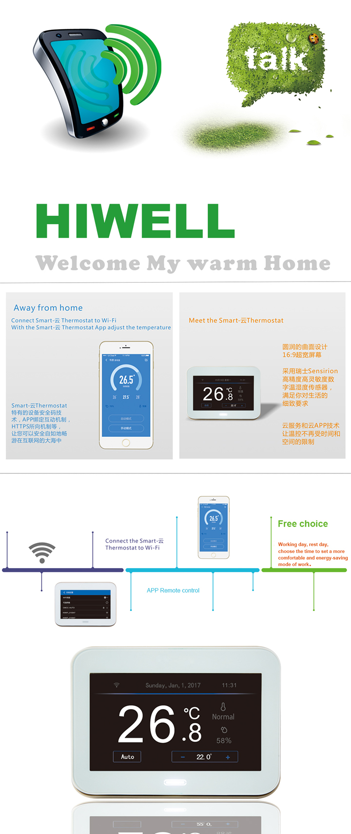 Wifi color touch screen floor heating thermostat APP