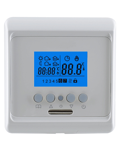 On/off control output for heating device Symbol indicator when heating is on Temperature limitation function for protecting the wooden floor Current room temperature displaying when the thermostat is switched-off “Key-lock” function for protecting the setted parameters (especially suitable for Public Places)