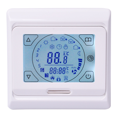 Touch-screen operating interface 7-day programmable function for energy-saving operation On/off control output for heating device Symbol indicator when heating is on Temperature limitation function for protecting the floor “Key-lock” function for protecting the setted parameters (especially suitable for Public Places) Current room temperature displaying when the thermostat is switched-off